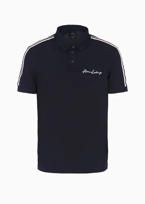 Polo manga curta com risca e logotipo