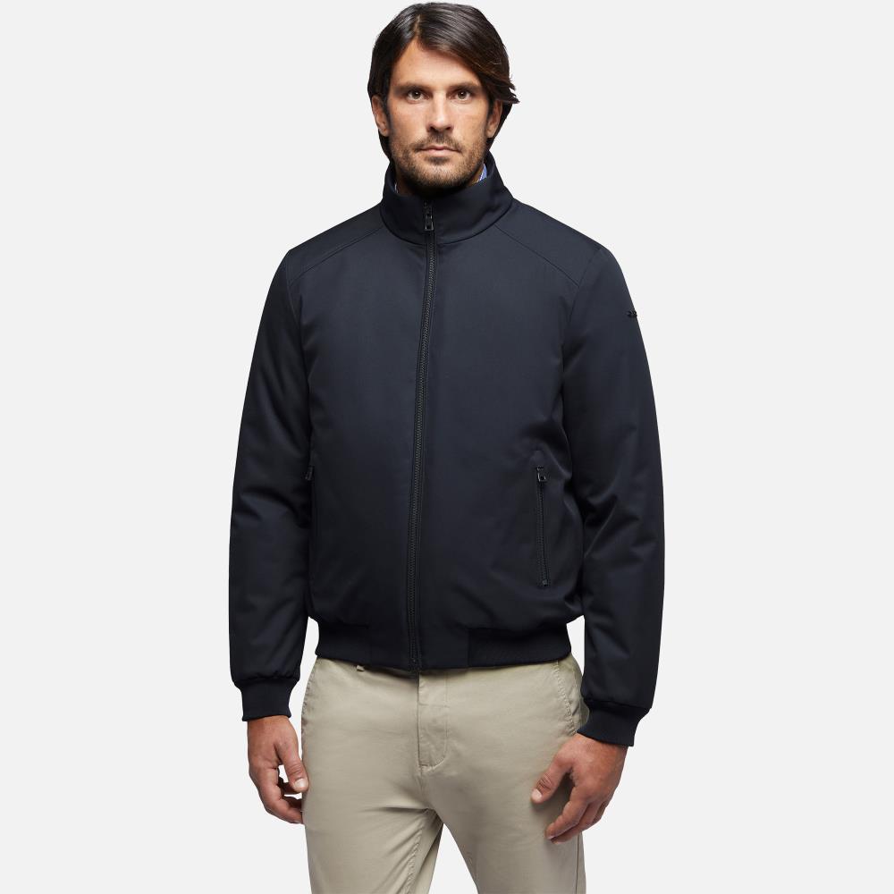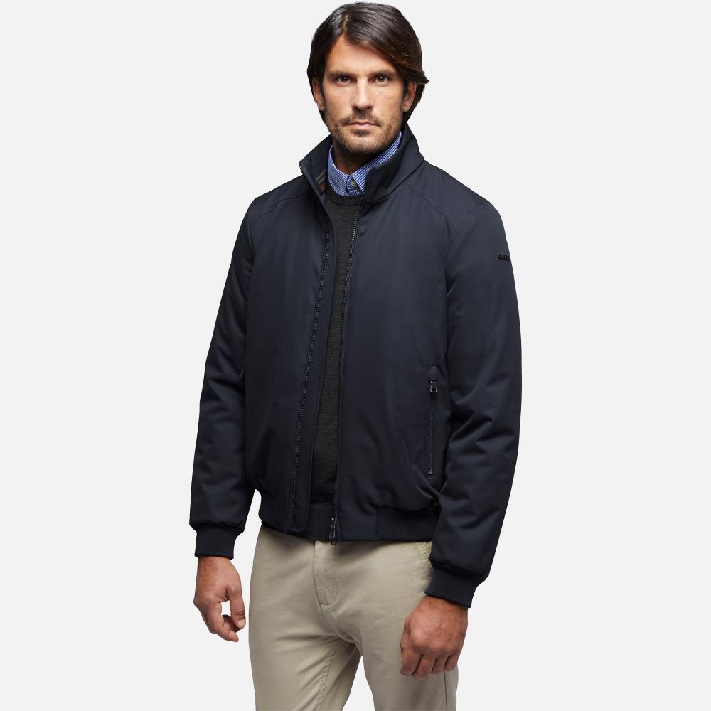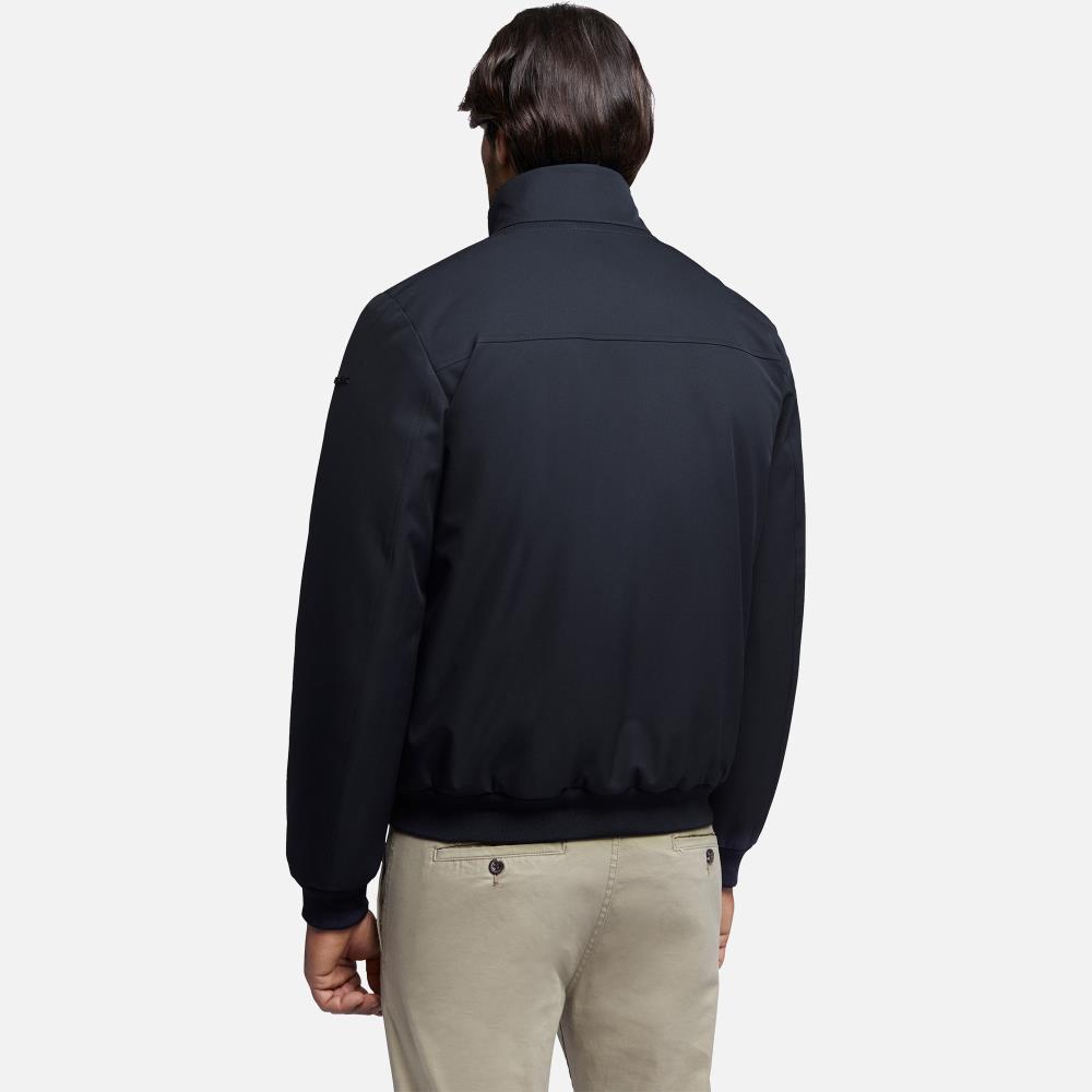 Bomber curto homem de estilo formal e citadino, clássico na forma e funcional nos detalhes