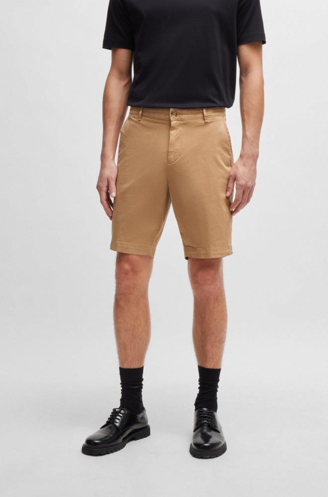 ” Calções de cintura regular de ajuste definido BOSS Menswear em sarja suave feita de algodão misturado com elástico.