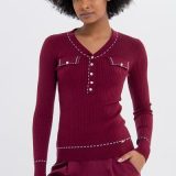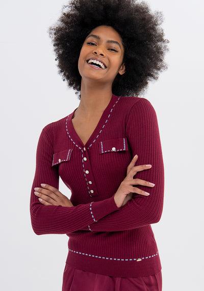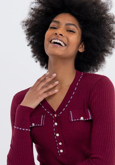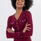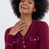 Cardigan curto com botões em contraste