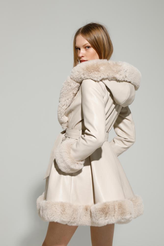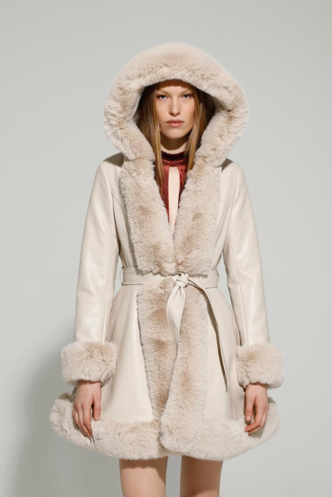 Casaco em ecopele e pelo com gorro