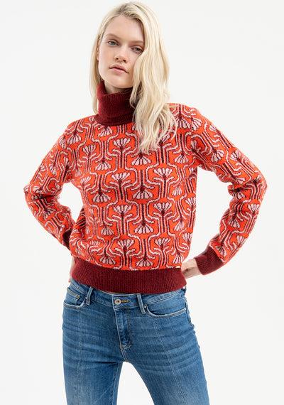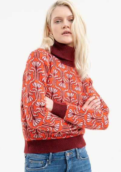 Malha gola alta com padrão