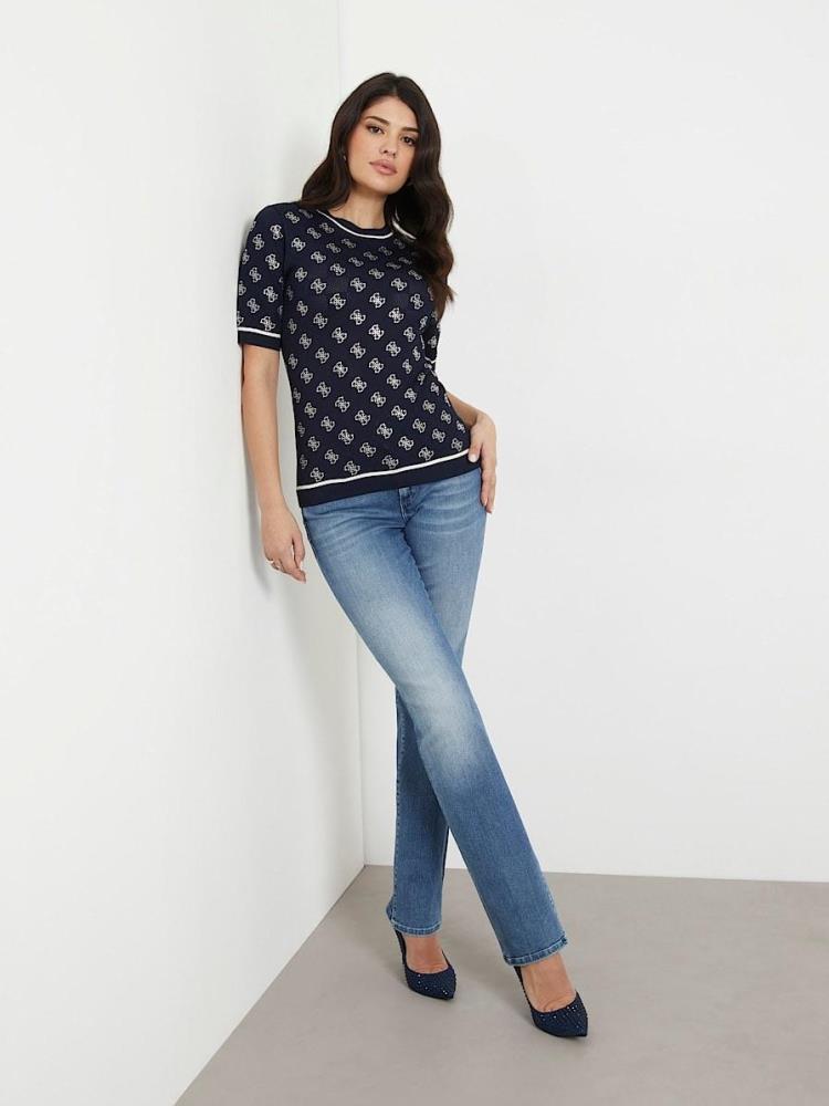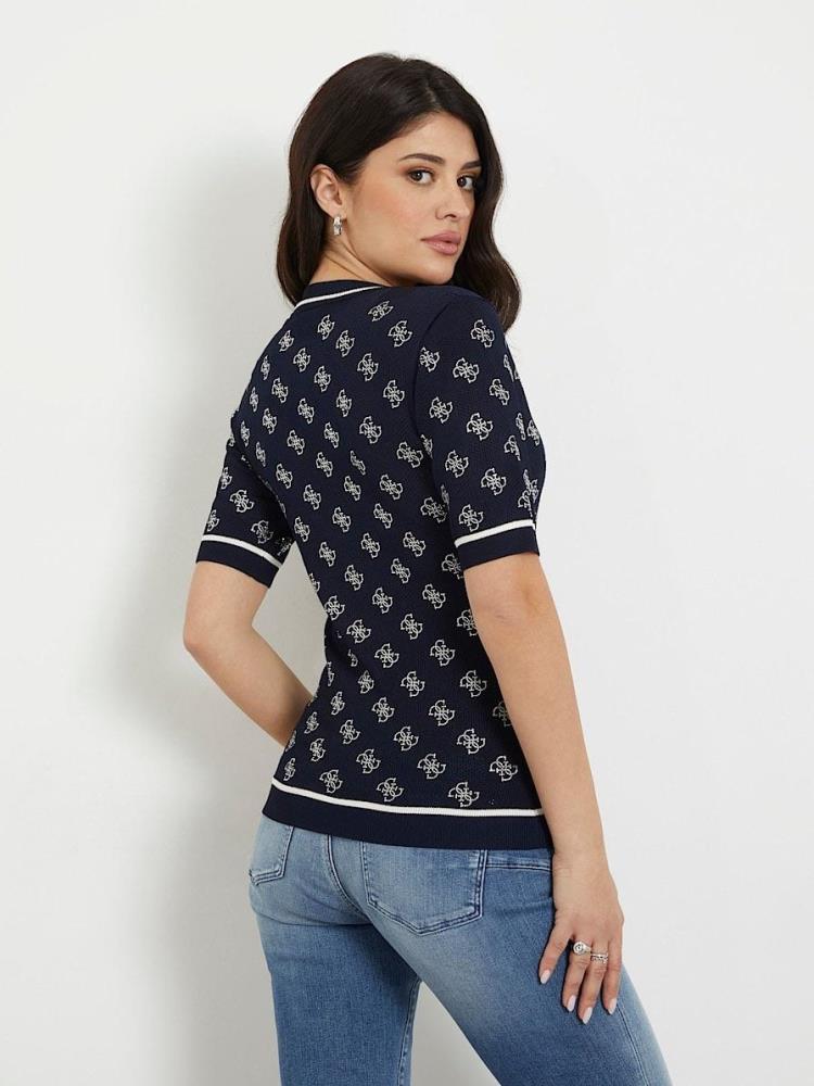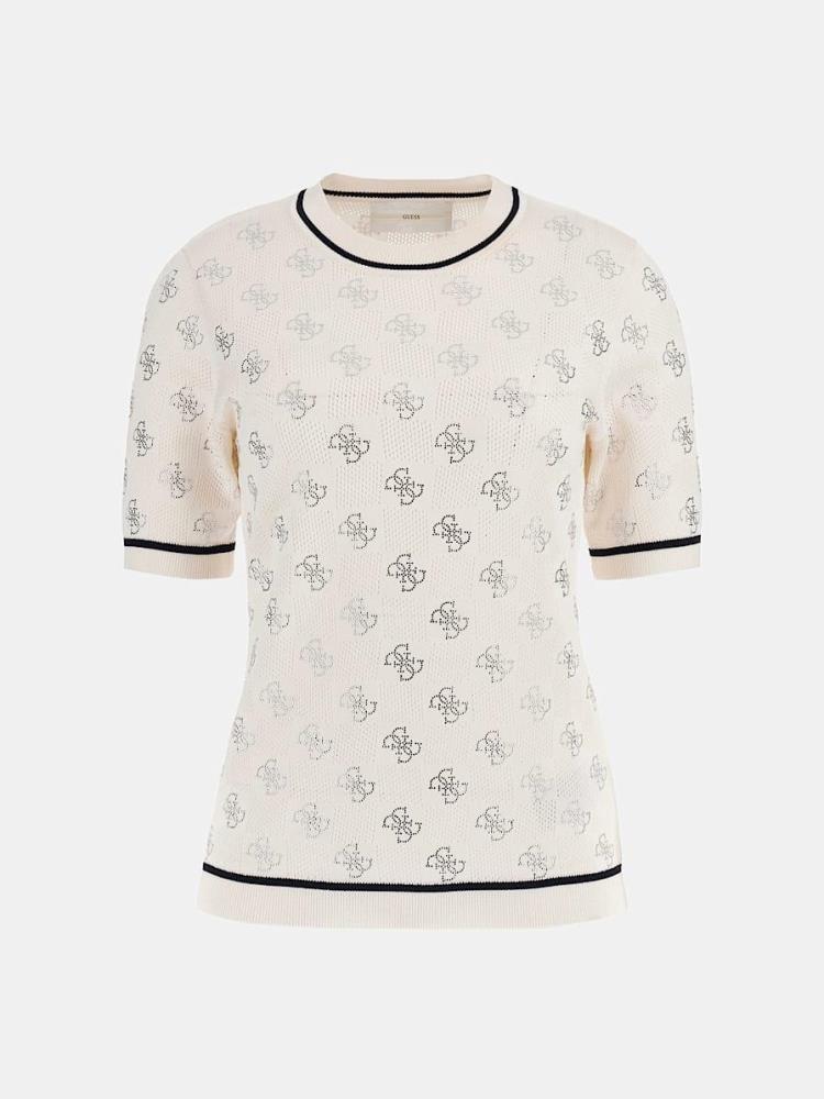 T-SHIRT DE MALHA COM LOGOTIPO 4G EM BRILHANTES